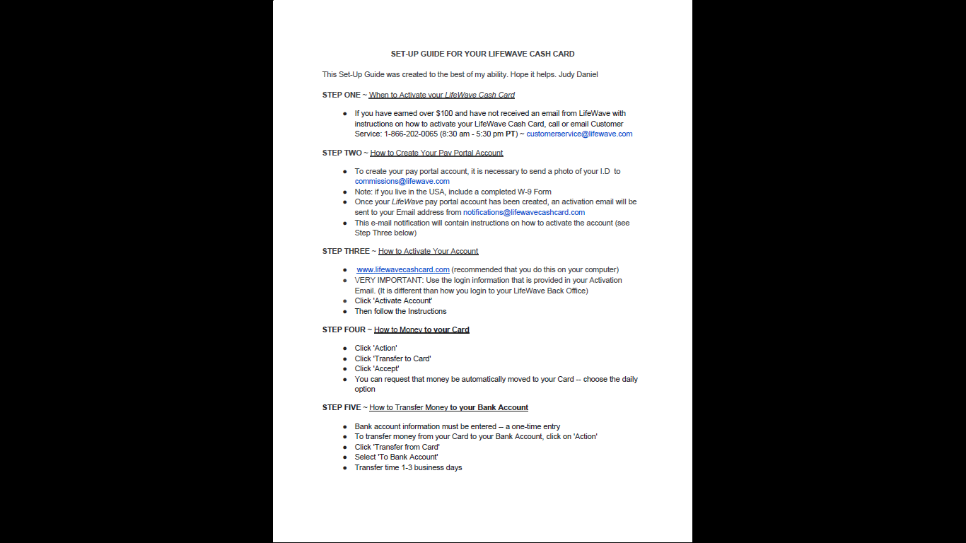 SET-UP GUIDE FOR YOUR LIFEWAVE CASH CARD: